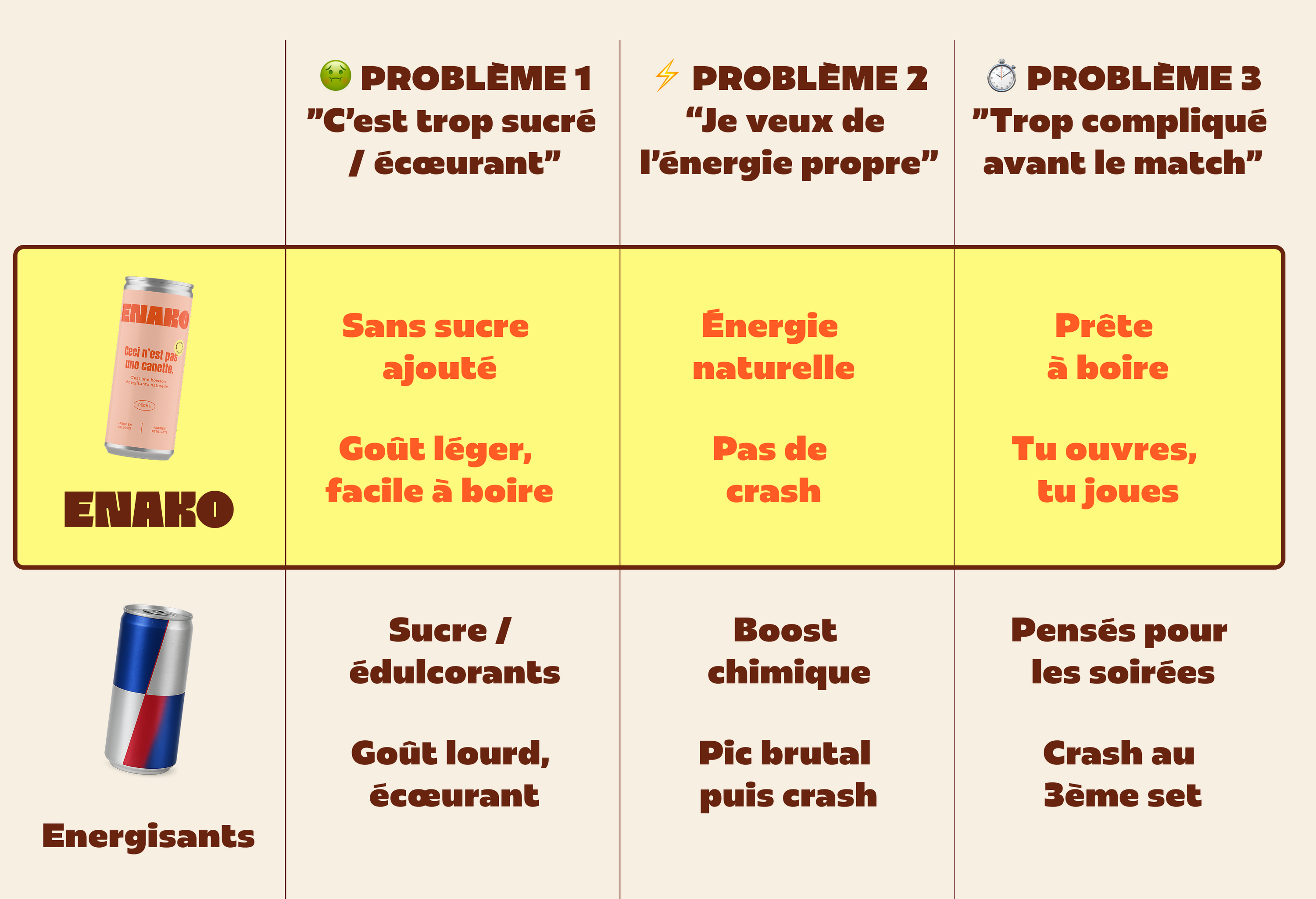 ENAKO = énergie stable et lucidité mentale. -