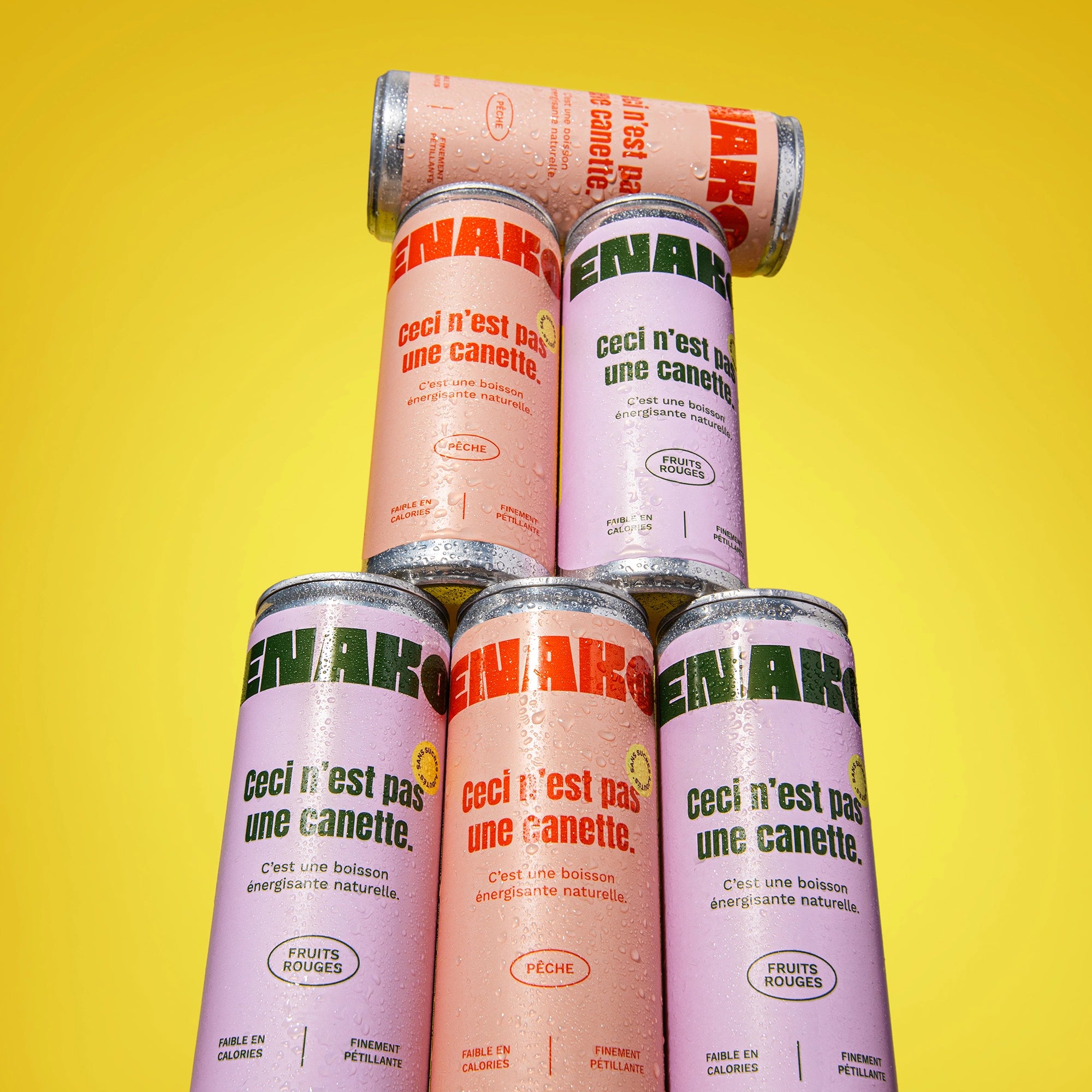 - ENAKO : 4 ingrédients naturels, 0 sucre ajouté, 0 taurine synthétique, 18 kcal.